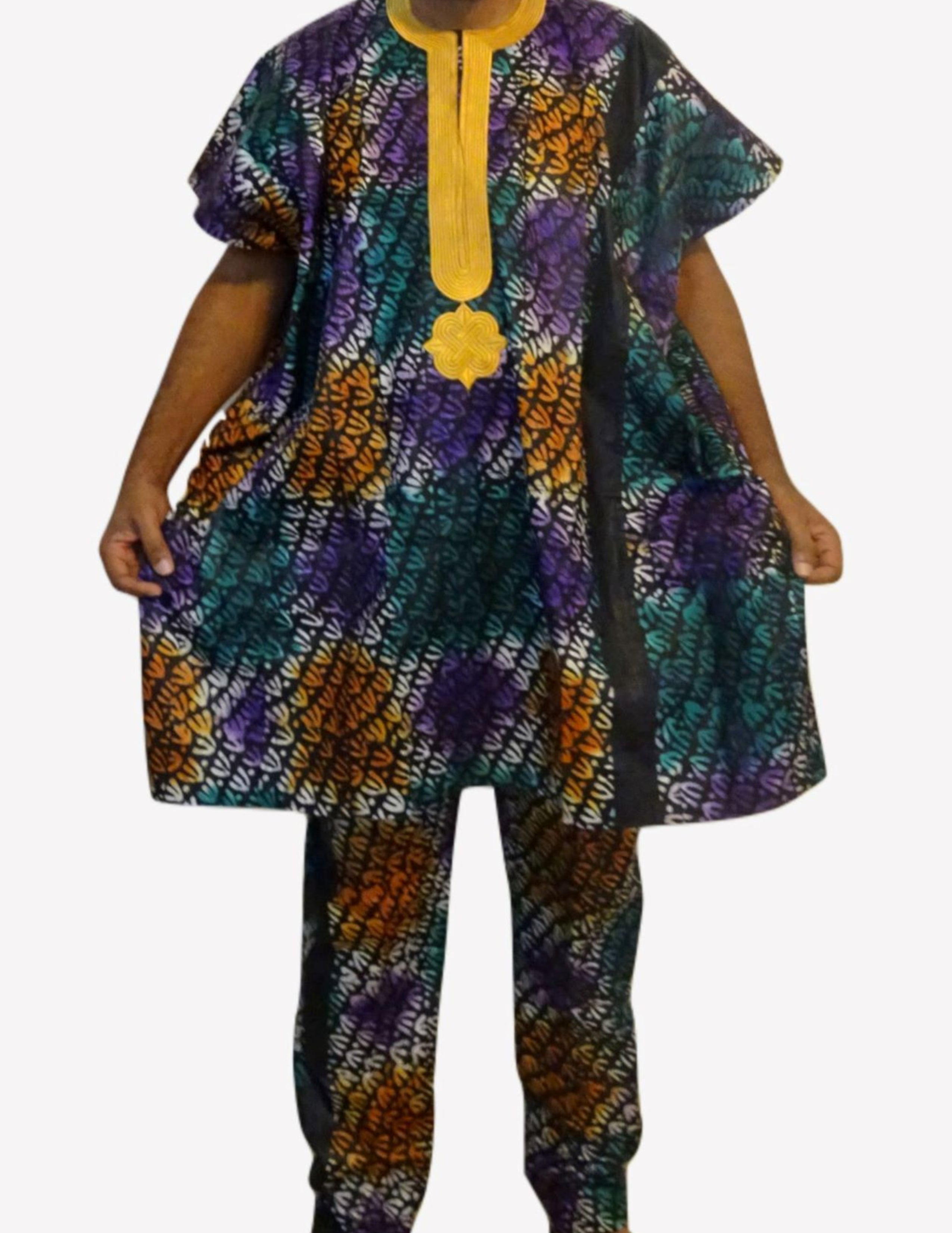 Men's kampala pants and top set with lovely and gold embroidery to enhance the top.